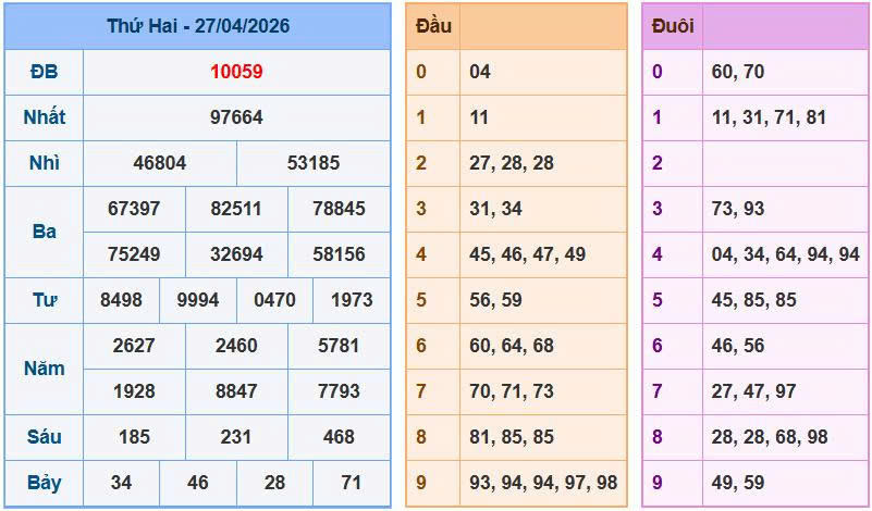 Dự đoán kết quả XSMB thực chất là một công việc nghiên cứu tỉ mỉ, tổng hợp dữ liệu qua nhiều kỳ liên tiếp để tìm ra hướng đi của những con số. Thay vì chọn theo cảm tính, người chơi thường ưu tiên sử dụng các bản tin dự đoán để nhận diện các nhịp lô có tính logic. Bên cạnh đó, bạn có thể tham khảo Dàn đề 70 số khung 2 ngày để có thêm phương án chơi an toàn. Việc soi xét kỹ lưỡng từng vị trí giải, đặc biệt là sự tương quan giữa giải Đặc biệt vừa về (28) và nhịp chạm 1 đang có xu hướng nổ, sẽ giúp chúng ta xây dựng được một chiến thuật đầu tư hợp lý cho nguồn vốn của mình trong ngày 28/04.